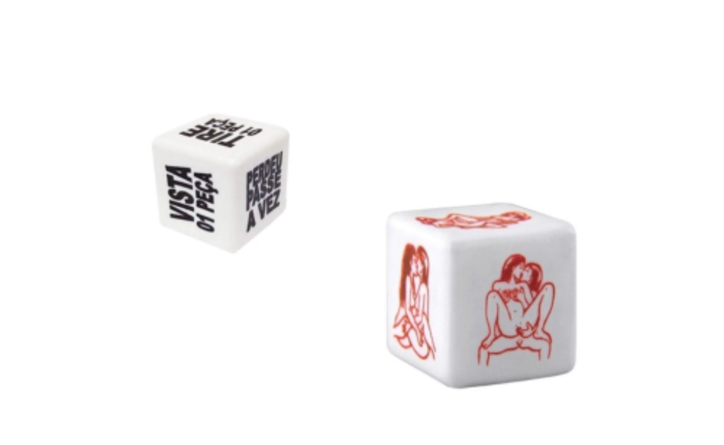 Tem dado com posições lésbicas, dado de strip tease, raspadinha do beijo e raspadinha com posições lésbicas.