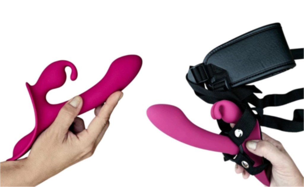 Seguinte: Cinta Strap On + Dildo Vibrador Rabbit + Três Vibradores
